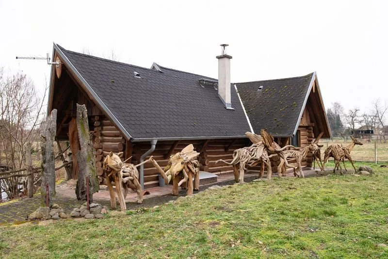 Beim Kauf einer dort ausgestellten Skulptur kostet die einfache Übernachtung im Blockhaus nur 50,00 € für zwei Personen